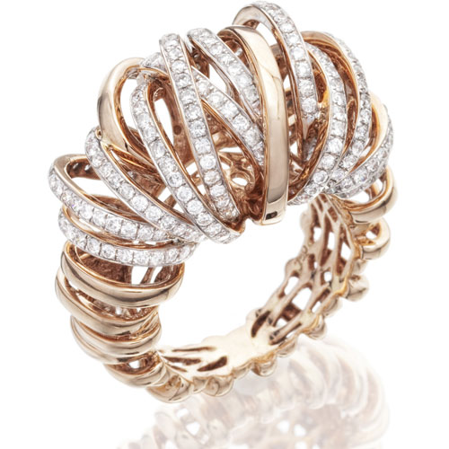 Rose gold necklace with mixed cut diamonds. Rose gold All rings, Gomitolo 85th Anniversary collection by Damiani. ON LEFT ARM: Peach gold bangle White and rose gold signet rings with macro initials in black and white diamonds, ... Retrieve Document